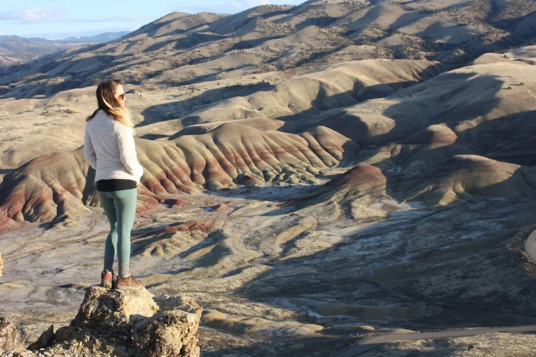 From Sheep Rock, we headed down the Journey Through Time Scenic Byway for the hour drive to the Painted Hills. On the way we saw a herd of antelope and tons of deer! During the spring months, the Painted Hills is not a very popular destination, so when we arrived at the monument a couple hours before sundown, there were just a few cars there ahead of us. We drove to the very end of the road in the park and worked backwards, starting at Red Hill and checking out all the short trails on the way back to the main attraction. We planned to do the Carroll Rim Trail in time to catch the sunset - the way the shadows land over the Painted Hills is just too much. I’d been dreaming about it since I’d seen it the first time!